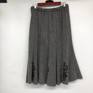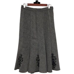 Tanjay Heathered Grey Embroidered Flared Midi Skirt size 10