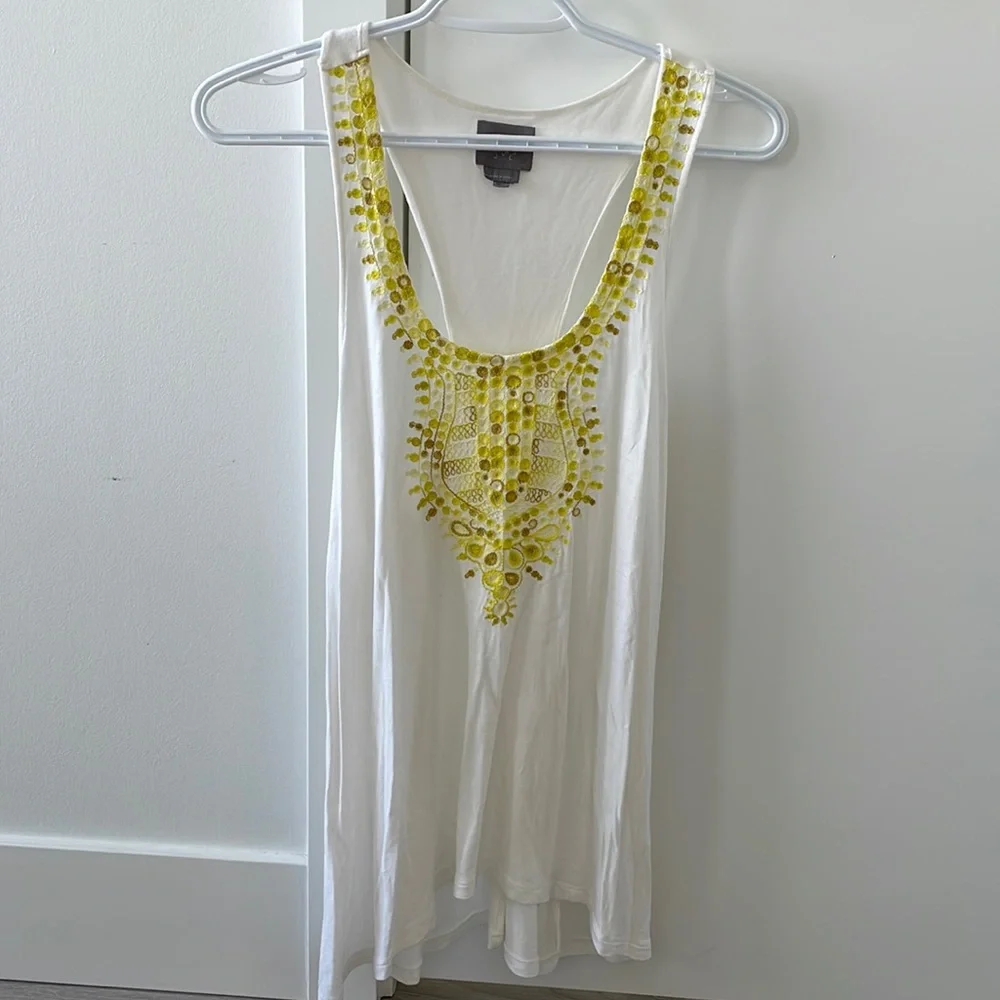 Vanessa Virginia Tank Top Blouse. Like new condition. White with yellow / gold detail on front