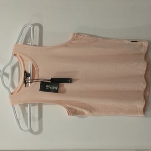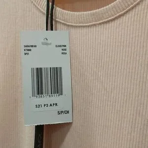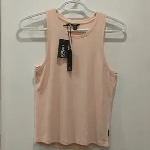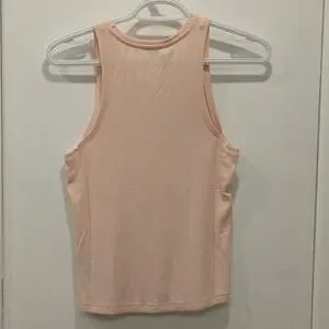 Rib Knit Tank Top. Viscose/elastane. Machine wash, about 21" from shoulder to hem. Brand new, never worn. It is a light coral pink.