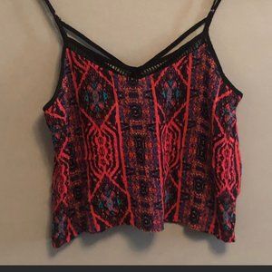 - "Forever 21" Bright Crop Top. Material tag cut out. Cute strap and crisscross on the back. Size small