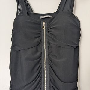 Tank With Sheer Straps And Zipper Accent Womens Large Matrix Goth Office Siren