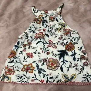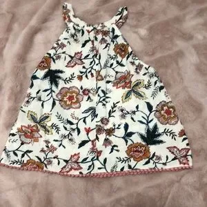 Girls flowy tank top. EUC worn a few times. Floral with a pretty detailed hem and a key hole back with pearl button. Medium