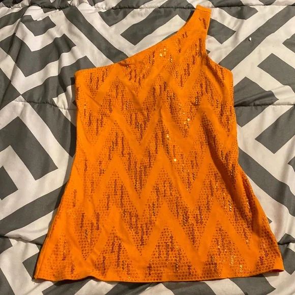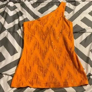 Orange sequins and glitter one sleeve tank top