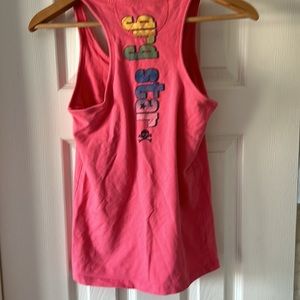 Excellent condition Ladies razor back tank top Logo on back and lower bottom Ptp 14 inches Length 23 inches Pink colour
