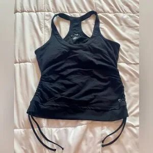 Womens black racerback tank top Size large Excellent condition only worn once Adjustable side strings Built in sports bra Great material Fitted fit Bundle and save with other items and I’ll discount items as free