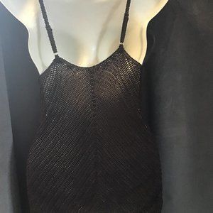 Boho tank, great for layering, over bikini. Has some stretch, 34" chest (up to 36), and 13.5" long, under the arm to the bottom. Is a loose knit, so slightly see through. No damage or flaws. The straps are adjustable.