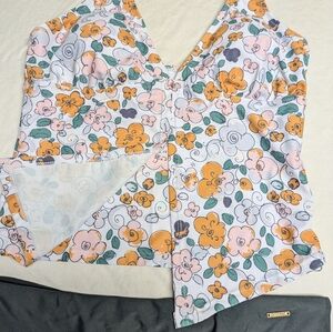 Highrise highcut medium coverage bottoms and adorable floral Tankini Vneck top. Padded bust. Adjustable straps