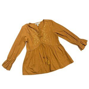 Tantrums Burnt Orange Embroidered Peasant Tunic Top – Babydoll, Size S, Like New