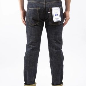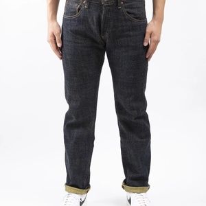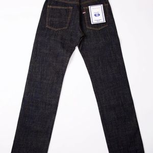 A mid rise with slim straight cut with a shorter inseam for a contemporary ankle cut length. The SOGA fabric is a highly textured 15oz denim made from Texas cotton and dyed using a botanical blend of saffron and turmeric.