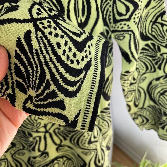 Tanya Lam Top 3/4 Length Sleeves Green Black Floral Pattern Stretch Womens Small