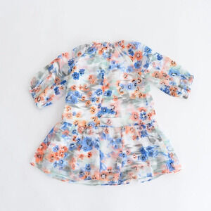 Tanya Taylor Mini Eliza White Orange & Blue Watercolour Floral Dress XS NWT