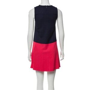Bold color blocking articulates the modern lines of a textured-crepe shift dress,