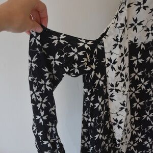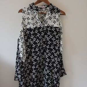Tanya Taylor open shoulder, black and white floral pinwheel dress (US 6)