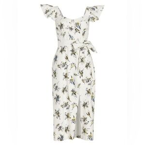Tanya Taylor white floral linen Alyna belted midi dress - size 4 (Small)