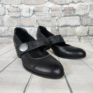 Taos Black Leather Mary Jane Shoes Stacked Heel Size 41