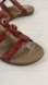 Chic red leather sandals with stylish metal details. Adjustable straps for perfect fit. Cushioned footbed for all-day comfort.