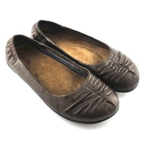 Taos Repleat Bronze Leather Ballet Flats Metallic Arch Support Round Toe Size 6