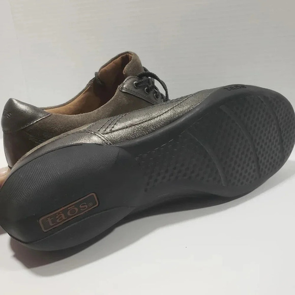 Taos womans brown/gray metallic leather steady lace up casual sneaker,size 11.