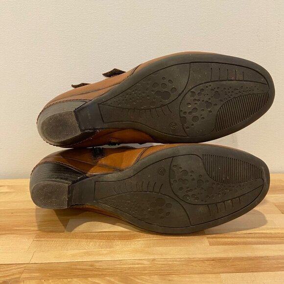 Taos Womens Brown Leather Ankle Boots With Straps chunky heels hook & loop 39