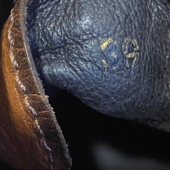 Distressed leather with Minor scuffing on the toes and heels, that are part of the style.