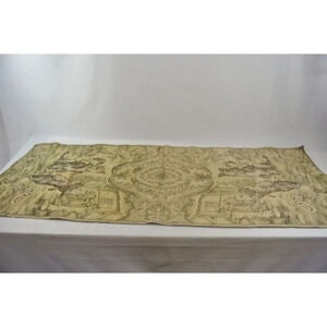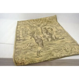 Tapestry Woven Table Runner w/ Dog and Children Scene Vintage