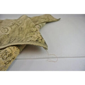 The piece has a couple of brown areas, but this looks like darker thread, not staining. It measures 44" x 18". I am not sure what the thread is made from but it's fairly soft.