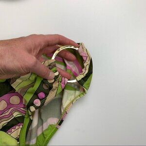Discover the vibrant beauty of a Tara Grinna 3 Piece Kaleidoscope bikini! Made with a stunning blend of green and purple fabrics, this bikini packs a punch of colour and style.