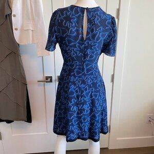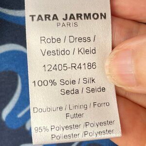 Tara Jarmon Paris SS Fit & Flare Print Partial Lined 100% Silk Dress Blue Sz 36