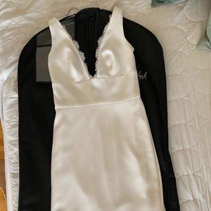 This dress was purchased as a sample in 2019 but was never worn after original purchase (due to COVID wedding changes). There are slight alterations in the waist/hips (taken in slightly - the alterations match the waist and hip measurements below) and the straps have been taken up (though the fabric is still within the inside fold, and can be taken out by a seamstress). For the chest measurements - this was never taken in and is loose on my bust (88cm, 34C), so someone with a larger chest would be able to purchase this.