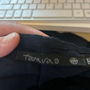 A mix of Linen and Rayon makes a beautiful drape on this tunic . It has a fold of Fabric down the front as well as a crossways fold giving shape to the bodice. Great Brand, well made. Worn twice.
