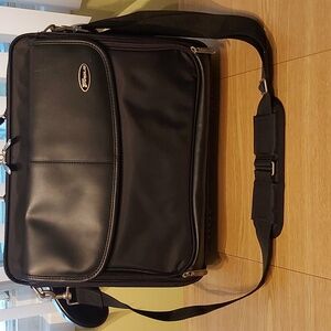 Targus CTM 0400 black laptop carry case. Will hold a laptop/notebook up to 15.4" screen. Includes pockets for physical files, cell phones, pens, business cards. Adjustable shoulder strap and lockable zipper pulls. Exterior dimensions 16" X 5" X 11.75". Brand new, no tags. Retails for $75.