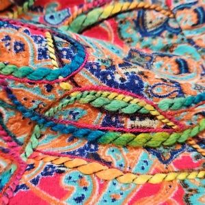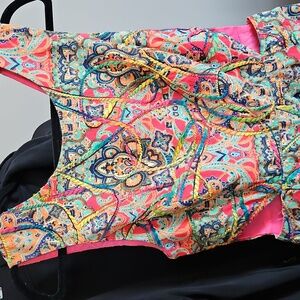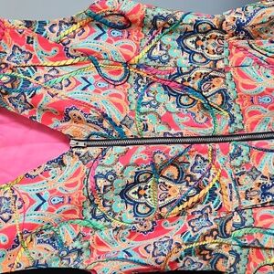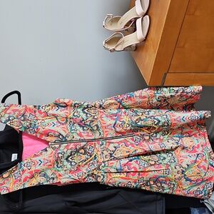 Vibrant sleeveless dress featuring a colorful pattern. Perfect for making a statement at any event. Absolutely stunning, unique, and NWOT. It has a beautiful lining as well.