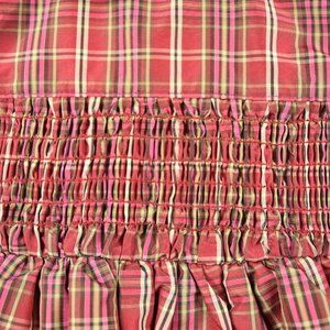 Red tartan with pink and tan, Polyester Peter Pan collar in cotton.