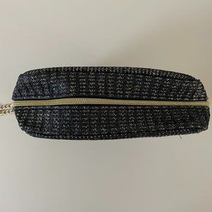 Tarte Black Chic And Sleek Cosmetic Makeup Bag Gold Chain Metallic Thread New