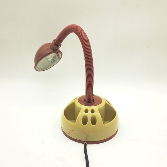 A desk lamp depicting the Looney Tunes character the "Tasmanian Devil." It is red and beige and, most importantly, has been tested and works. There is some wear as in the pictures. The base has sections to allow for crayons and kids' craft supplies to be stored.