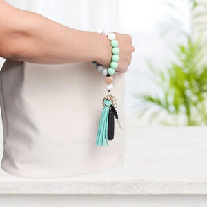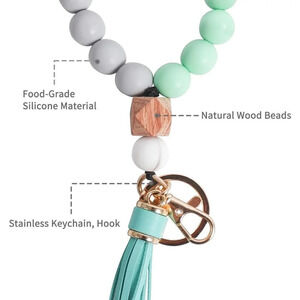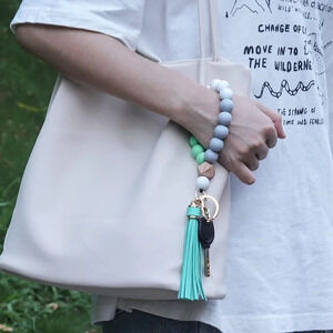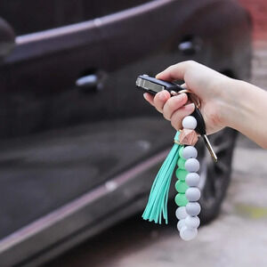 Tassel Silicone Forthee Wristlet Key Ring Bracelet Beaded Key Chains for Women