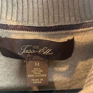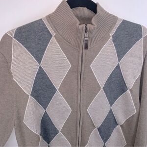 Tasso Elba Beige Grey Full Zip Argyle Lightweight Cotton Sweater Men’s Medium