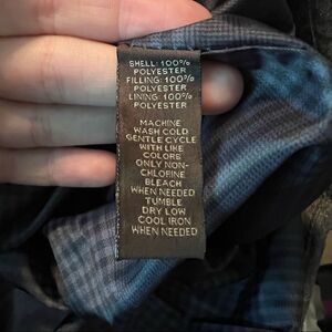 This Tasso Elba men’s brown puff coat in size large is in excellent pre-owned condition with minimal signs of wear. The coat is designed for both style and comfort, featuring a lining for added warmth and a secret pocket on the inside for added functionality. The rich brown color adds a touch of sophistication to your winter wardrobe.