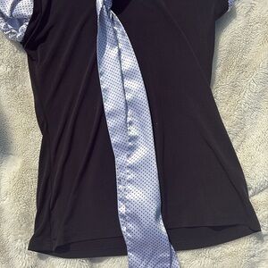 Turn up the vintage charm with this bold black Tattoo top in size medium, featuring playful white polka dot accents on the puff sleeves, collar, and attached scarf detail. The sleek fit and retro-inspired silhouette make it the perfect piece for expressive fashion lovers looking to layer or stand out solo.