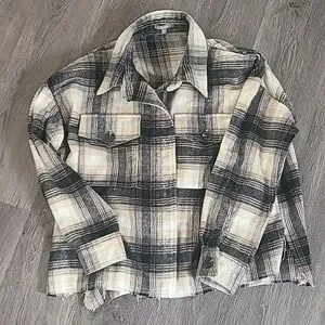 New condition. Tattoo brown shacket. Button up with 2 front pockets and raw/slightly frayed hem. Size small and fits oversize.