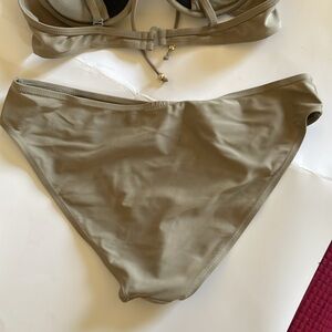 Stylish taupe bikini set size 12. Cute details on the top with adjustable straps. Full coverage bottom.