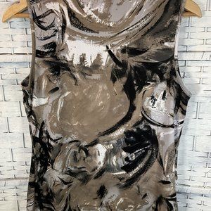 Description: Taupe/Black/White Graphic Print Tiered Ruffle Sleeveless Top