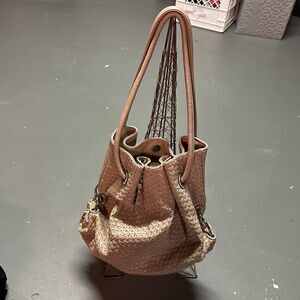 Taupe City Life NYC Leather Glitter Bucket Bag