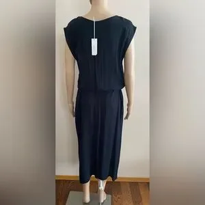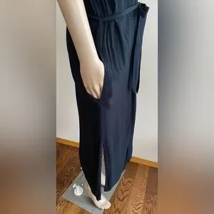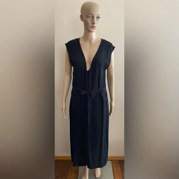 Get that effortlessly put together look with the Tavik Leeman Black Sleeveless Midi Dress! Soft and lightweight woven Rayon shapes a relaxed bodice, with a sleeveless design, and a covered full button placket. Tying sash at the waist tops a midi skirt with side seam pockets, and side slits.