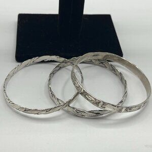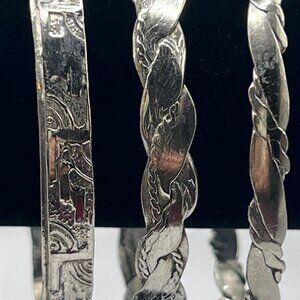 Beautiful freshly polished Taxco Mexico 925 silver bangles. Gorgeous stamped pattern. One stamped and 2 braided. Price is for all 3 !