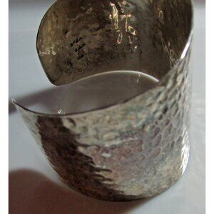 Taxco Sterling Silver Bangle Mexico TF-5 Hammered Cuff Bracelet 6 1/2 " Open