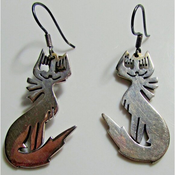 Taxco Sterling Silver Cat Earrings Mexico Mexican Bushy Long Tail 925