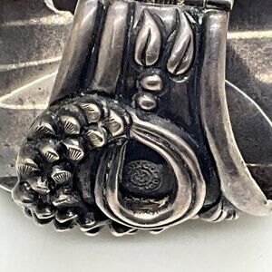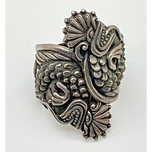 Taxco Sterling Silver Hinged Clamper Cuff Bracelet Quetzalcoatl Dragon Repousse