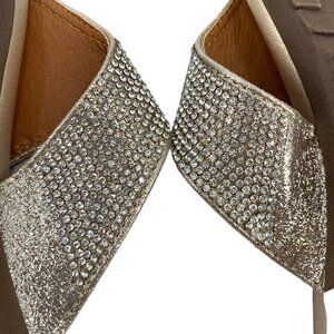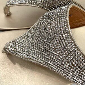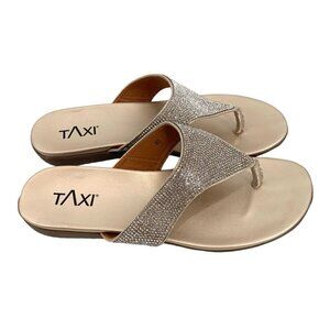 Taxi Rhinestone Sandals Size 9.5 Silver Thong Flats Glam Bling Wedding Vacation