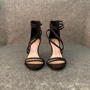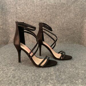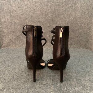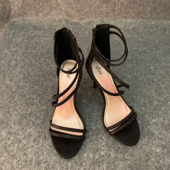 Taxi Women’s Black Glitter Zipper Heel Rhinestones Details Open Toe Shoes